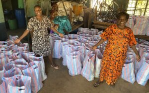 Die Sonne steht hoch am Himmel, der Staub wirbelt unter den Füßen der Frauen auf, die sich in der brütenden Hitze im St. Monica Village versammelt haben. Wieder haben sie ihre schönsten Kleider angezogen, denn: Es ist ein Tag, auf den sie lange gewartet haben. Mehrere hundert Witwen stehen oder sitzen im Hof des Witwendorfs. Zwei Wochen zuvor hatten die 821 registrierten Witwen Lose gezogen und freuen sich nun auf ihren Gewinn: Eine Ziege, ein Hühnerpaar, ein Sack Mais oder ein Paket Zucker – jedes Los ist ein Geschenk, das Hoffnung bringt.