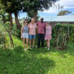 Ein letztes Foto zwischen den von mir im vergangenen Jahr gepflanzten Mangobäumchen zusammen mit Isaak, dem Fahrer, Lena und Sophie. Koffer gepackt und am frühen Nachmittag fuhr Isaak mich nach Asumbi zu den Schwestern, wo es ein frohes Wiedersehen gab.