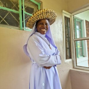Heute sollte ich um 9 Uhr von Sr. Lawrentia, der Hüterin des DfA-Stores, dem zentralen Lager für alle 14 Zahnstationen, nach Kisii abgeholt werden. Sr. John Mary war beim Abschied zu Fotospäßchen aufgelegt 😊.