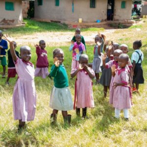 Er hatte am Vormittag Waschtag gehabt und hat uns noch herumgeführt. Auch er lebt mit von Farming. Die Kinder der Großfamilie hatten ihren Spaß mit uns, tanzten und machten Gymnastik mit uns. Ein toller Nachmittag. Wir besuchten danach noch den jüngsten Sohn von George in seiner Internatsschule hier in Nyabondo.