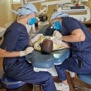 Ein kleines Mädchen, Vanessa, profitierte am Ende davon, dass Lena und Sophie eine kostenlose Behandlung angeboten haben. So kam Vanessa nachmittags erneut in die Unit, um mit insgesamt sechs Füllungen versorgt zu werden. Purity, die Dentaltechnikerin hier, hat heute sogar Abdrücke für eine Teilprothese gemacht.