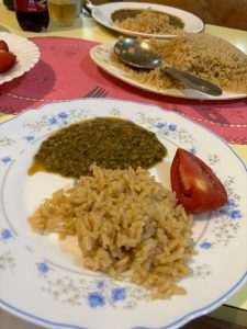 In unserer Mittagspause und zum Feierabend kommen meist Hülsenfrüchte oder Kartoffeln mit Fisch oder Fleisch auf den Tisch. Obwohl sie nicht viele Zutaten zur Verfügung hat, gelingt es ihr immer ein köstliches Gericht zu servieren. Mit viel Glück gibt’s zum Nachtisch sogar Pfannkuchen, welche wir mit Banane und Zimt gegessen haben.