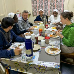 Nach ausführlichen Gesprächen gab es noch ein ausgiebiges Mittagessen, das in dem alten Küchengebäude auf Feuer zubereitet wurde. Überhaupt ist in Kenia Essen immer wichtig, und nie geht jemand hungrig vom Tisch. Auf dem klostereigenen Gelände wächst und gedeiht vieles, vor allem Hühner, Gänse und Schafe. Eine sehr idyllische Station mit einem sehr komfortablen Gästezimmer.