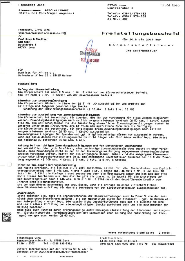 These guidelines apply, unless otherwise specified, to any person associated with Dentists for Africa as a board member, director, or paid or volunteer employee. This includes the interests of all persons with whom such persons have a close personal relationship, including spouses, life partners, children, parents, siblings, brothers, sisters or other close family members. The anti-corruption code is known to employees and volunteers in Germany and Kenya.