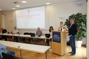 In Ausschnitten aus zuvor geführten Interviews kamen die kenianischen Partnerinnen und Partner zu Wort und gaben ein eindrückliches Bild über die Herausforderungen und die Motivationen ihrer täglichen Arbeit für Dentists for Africa wieder. Einsatzleistende, Vorstand, Projektleiter und Interessierte tauschten Erfahrungen aus und stellten die Grundsatzfrage: „Warum machen wir das überhaupt?“ Eine Antwort, auf die sich viele einigen konnten: „Um ein kleines bisschen mehr Gerechtigkeit in unserer globalisierten Welt zu schaffen.“