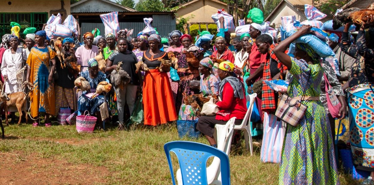 Das kenianische Organisationsteam um Witwendorf-Managerin Rhoda Ogada stand damit vor seiner logistisch bisher größten Aufgabe: Es mussten 330 Hühner gekauft werden sowie 101 Ziegen, 133 Obstbäume, 93 Maistüten, 63 Pakete mit Samen und Düngemitteln, 30 Pakete Zucker sowie 42 Kanister Öl. Außerdem mussten 77 Nahrungsmittelpakete mit verschiedenen Nahrungsmitteln wie Reis, Milch und Gemüse gepackt werden.